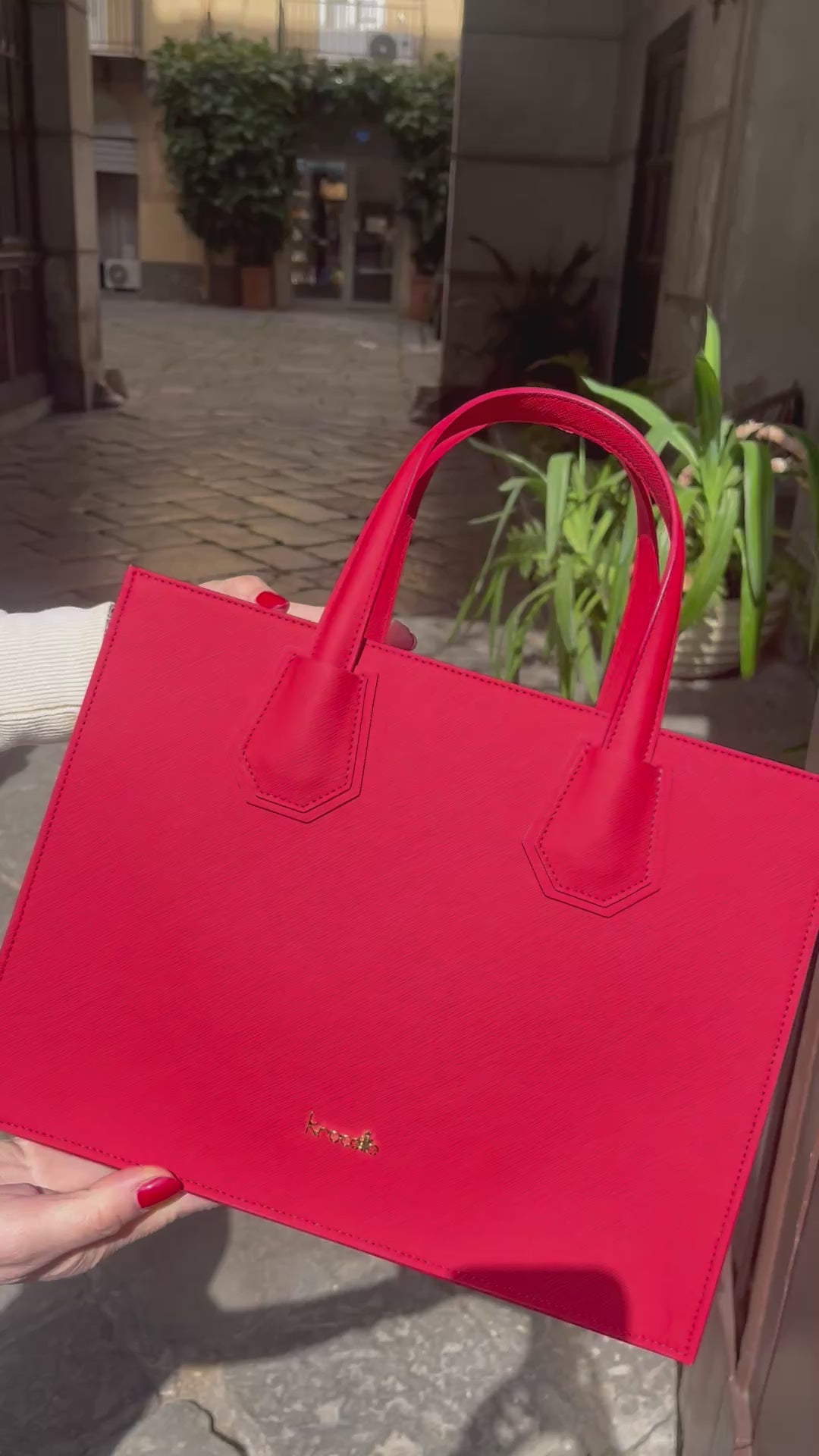 La texture preziosa in Saffiano, il design e le linee essenziali la rendono perfetta per i look più eleganti e per quelli più casual.