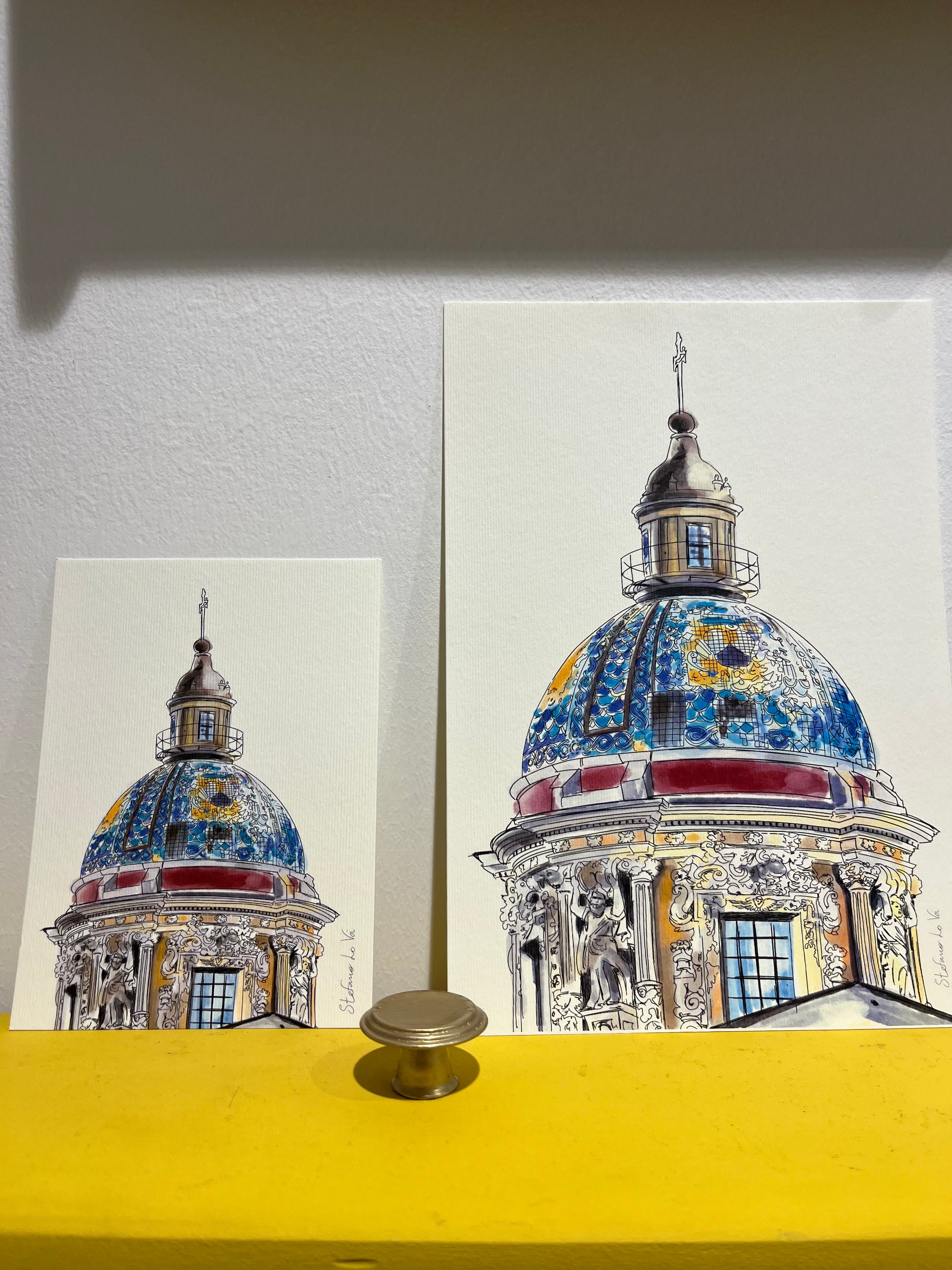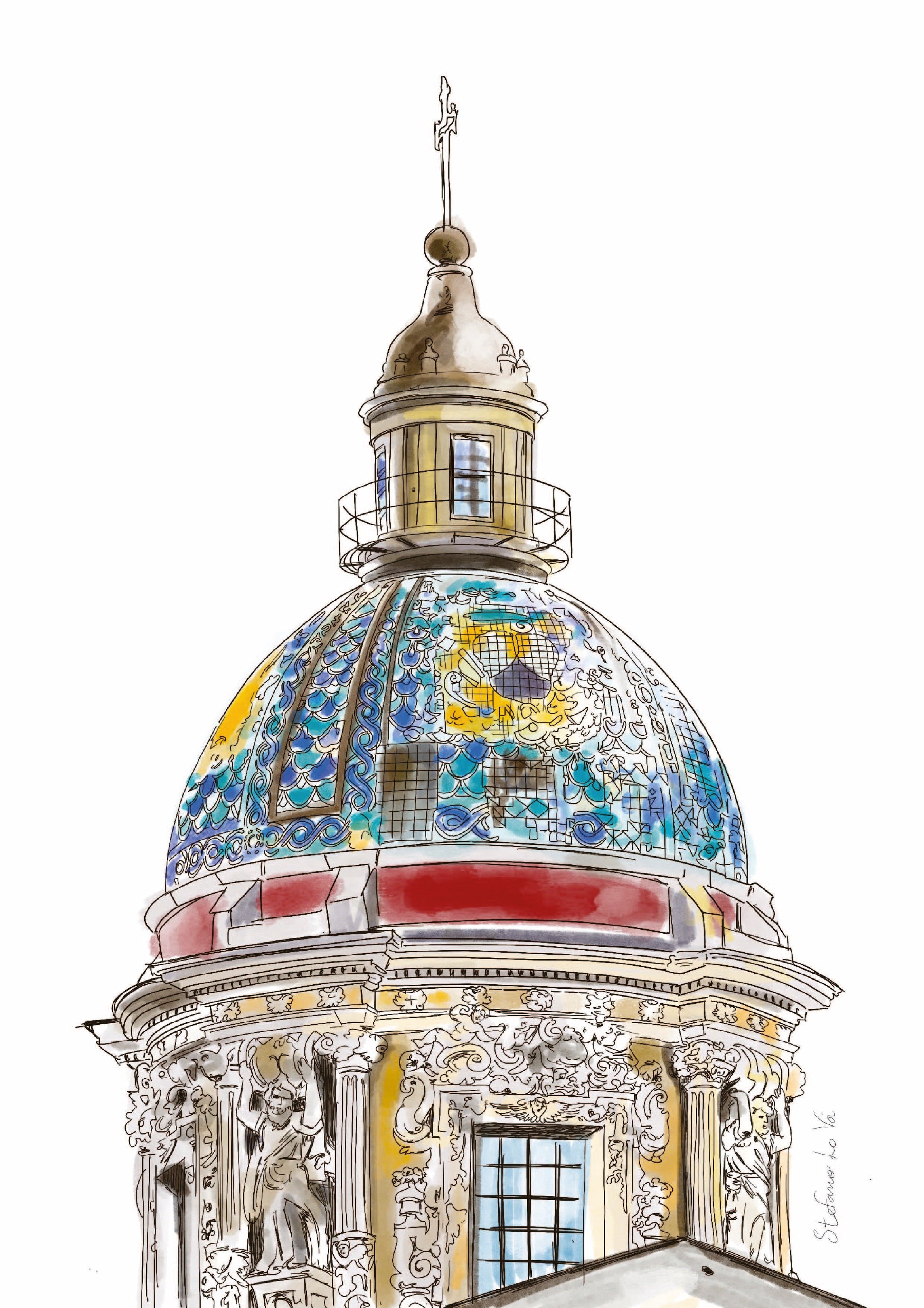 L'artista Stefano Lo Voi con questa sua opera ci fa volare con l'immaginazione sopra Palermo e ci fa esplorare tutte le cupole delle sue chiese più belle!