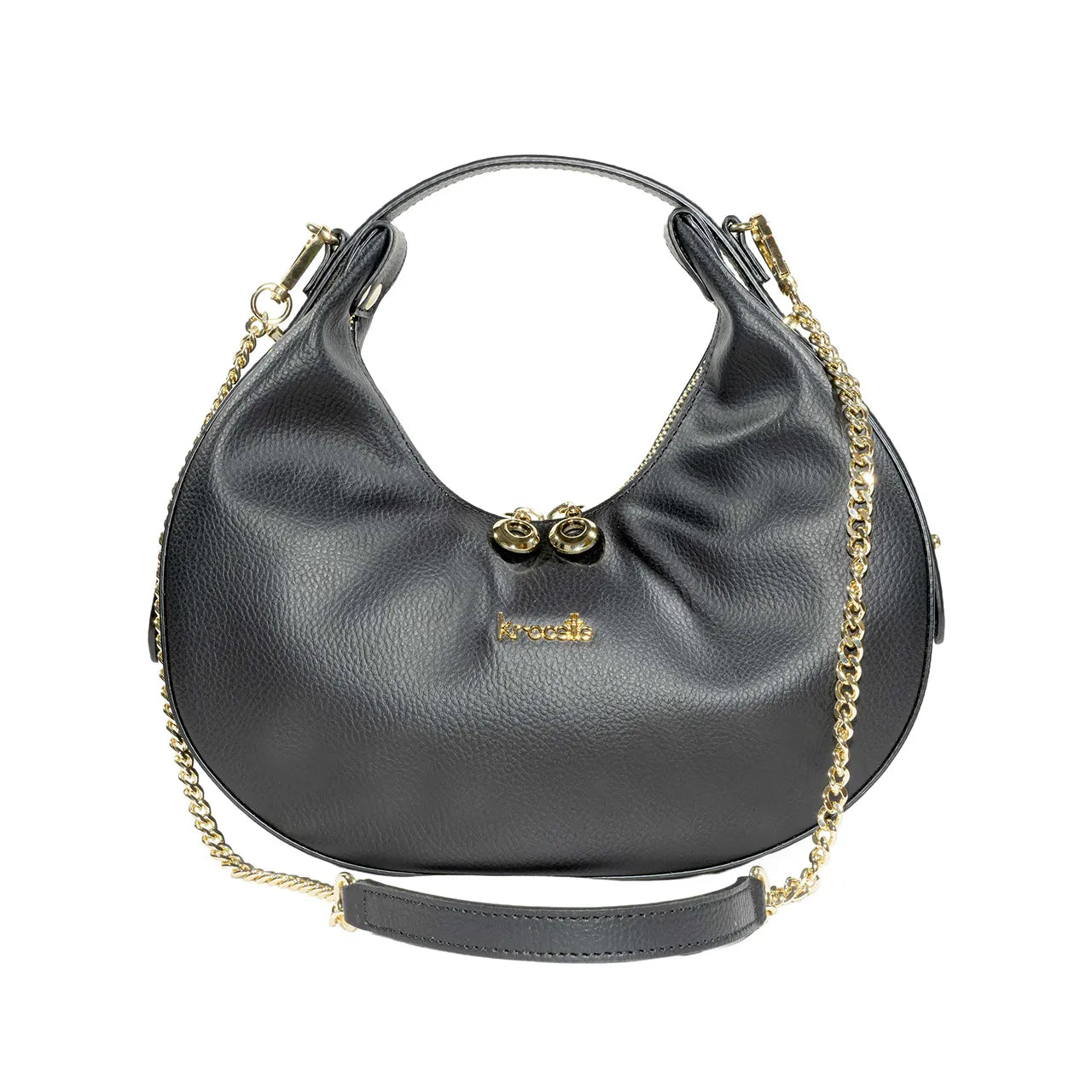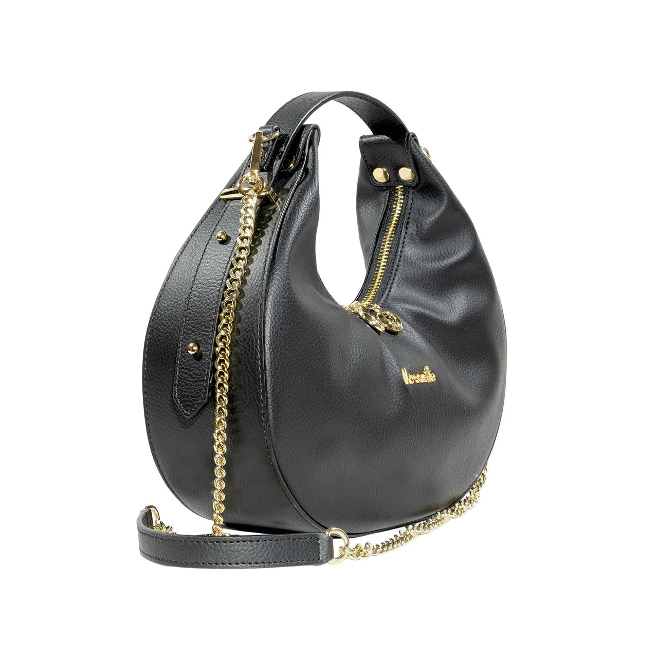 Il modello, morbido e dalla silhouette arrotondata, segue naturalmente la forma del corpo, impreziosito da dettagli in metalleria dorata che aggiungono un tocco di luminosità. Gaia è pensata per accompagnarti in ogni momento della giornata grazie alla sua versatilità: