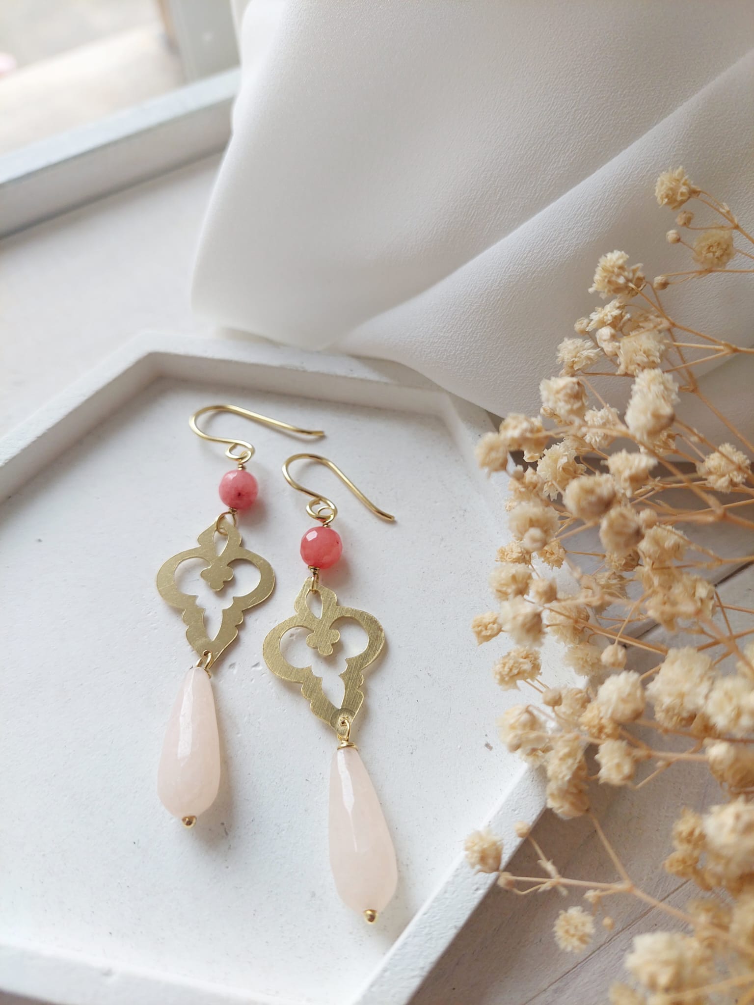 Dimensioni: struttura in ottone 2 cm con pietra tonda 6/8 mm pendente e goccia 1.8cm