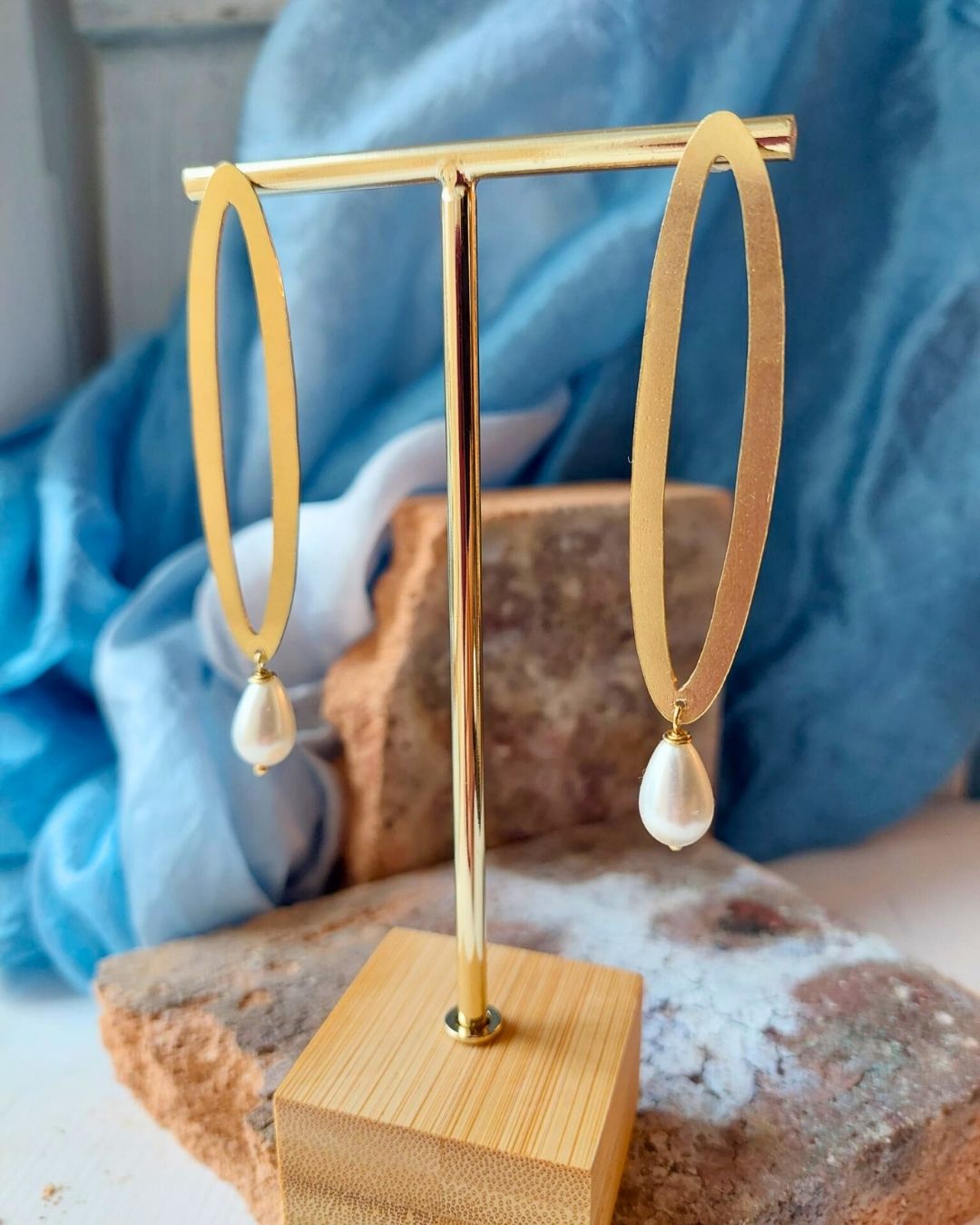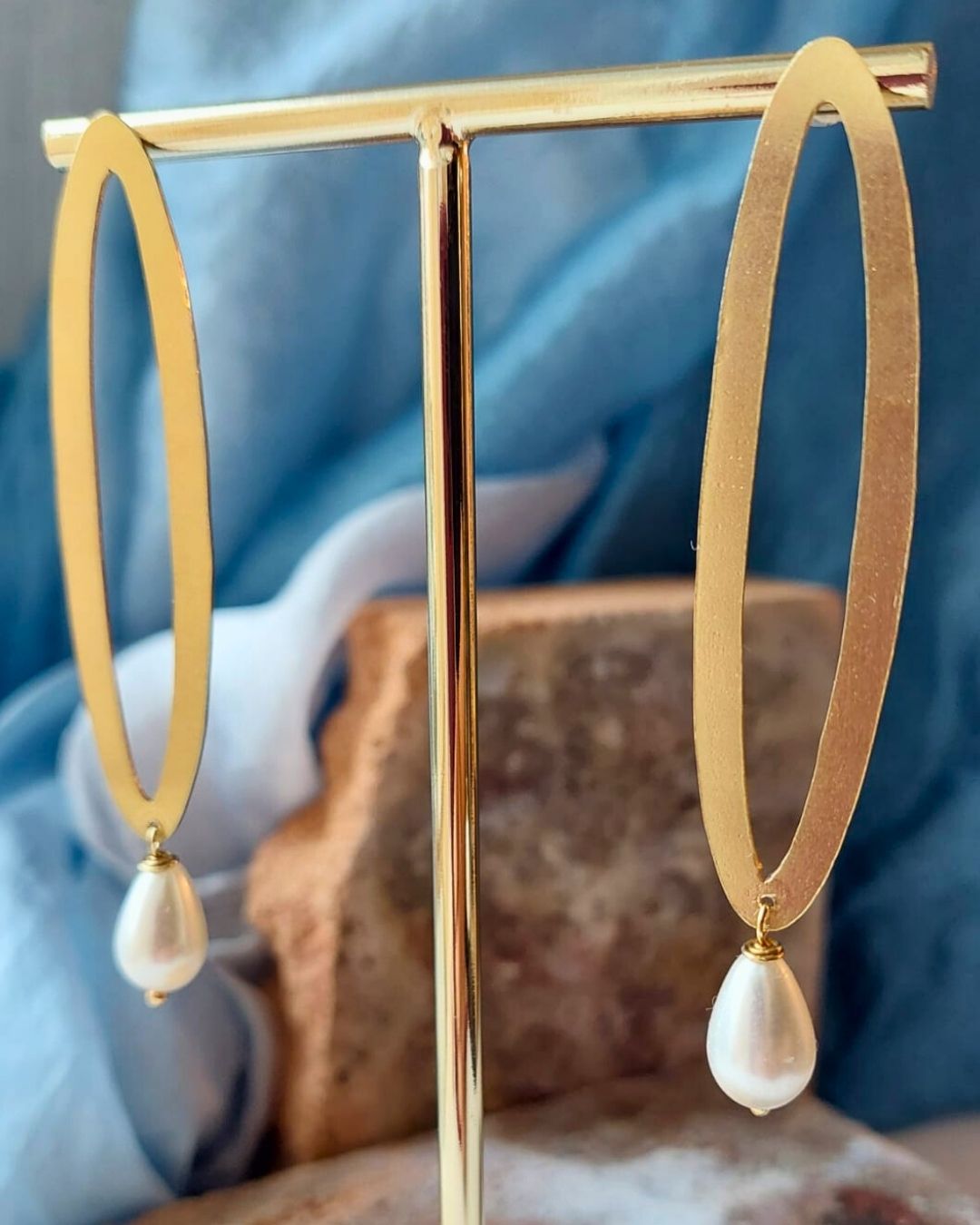 Dimensioni: pendente in ottone 6cm, perla 1cm